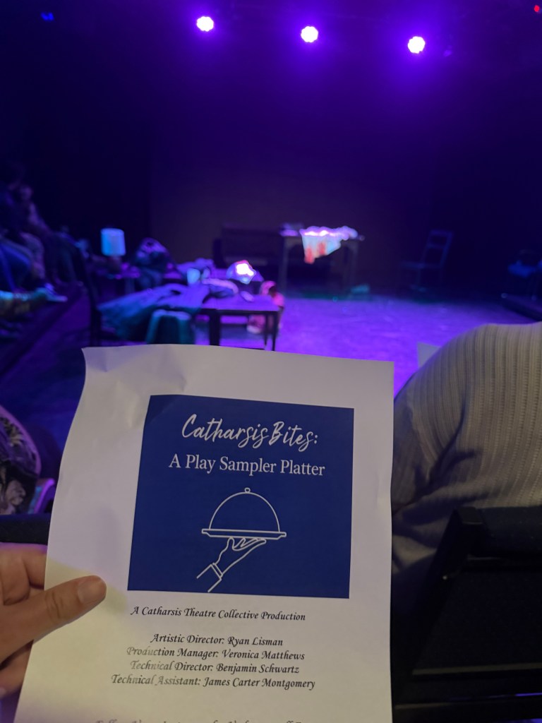 Ryan Lisman put together scenes from different original shows written by Catharsis Company members and it came out very well. I commend that all of these artists had something to say and put in hard work to produce their pieces. The project as a whole was very smooth and had good pacing, had strong pieces throughout. There were minimal sets but small set pieces that were easy to transfer; I blinked my eyes and a new show was up. Without further ado, let me get into the shows.